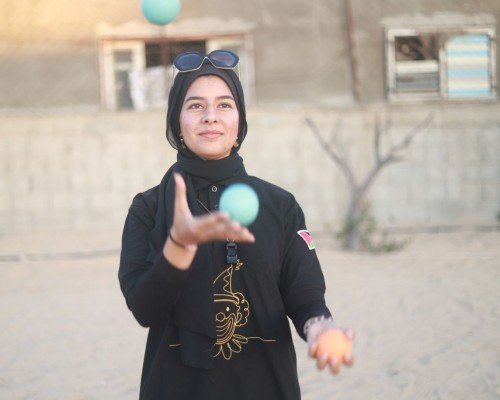 ترتفع ضحكات أطفال يتعلمون رمي الكرات في الهواء، قبل أن يمزقها دويّ انفجار قريب. تتساقط الكرات المليئة بالرمال وتتعثر الحلقات تحت الأقدام الصغيرة، فيندفع الصغار مذعورين بين الخيام في مواصي خانيونس جنوب قطاع غزة. وسط هذا المشهد المتناقض، تقف شهد حمدونة (20 عامًا) تحاول إعادة الفوضى إلى لعب، مستندة إلى ما بقي لديها من فنون السيرك لتصنع للأطفال فسحة أمل في قلب الحرب.