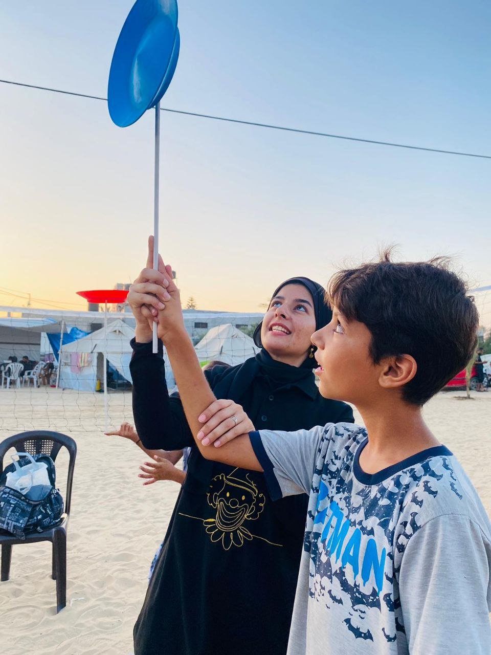 ومع ذلك لم تفقد شغفها، تقول وهي تلعب بكرة ملونة: "كانت من أجمل أيام حياتي، لكني انقطعت بسبب الدراسة في الثانوية. في الحرب رأيت كابتن كان يدربني، وأخبرني أن سيرك غزة فعال، وعرض عليّ العمل معهم كمساعد مدرب للأطفال فقبلت فورًا".