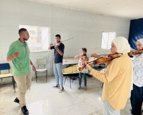 ورغم أنّ القصف دمّر مبنى معهد إدوارد سعيد للموسيقى، المعهد الوحيد في غزة، فإنّ المدرّبين واصلوا نشاطهم بين الركام، وتمكّنوا خلال عامي الحرب من تدريب أكثر من 600 طفل على الغناء والعزف في مناطق وسطى وجنوب القطاع.