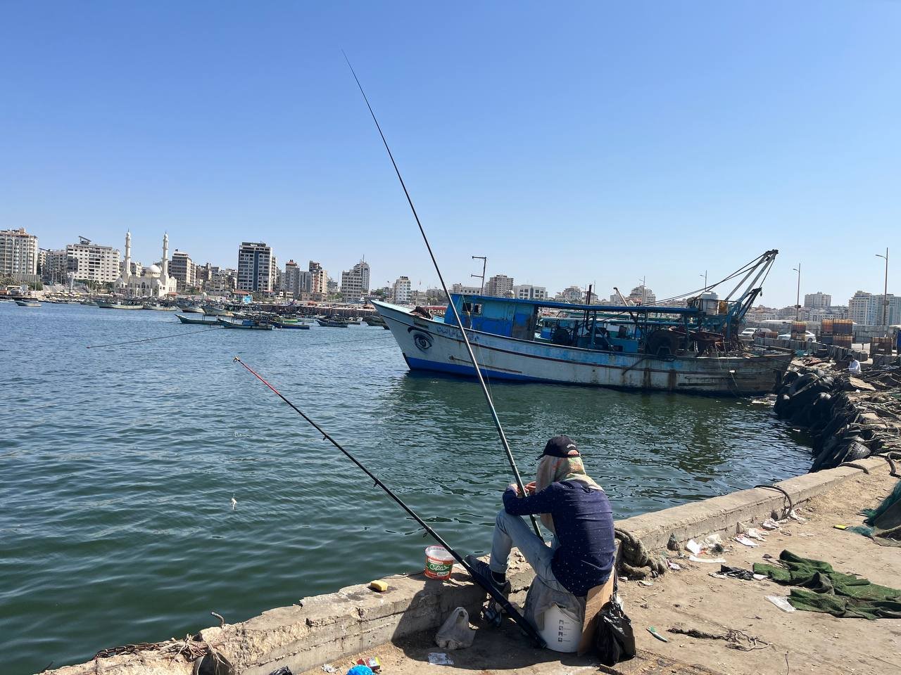 يقف أبو أحمد بموازاة عشرات الصيادين الذين يدلون خيطان صناراتهم اللامعة في حوض ميناء غزة، وهو المرفأ الأكبر على مستوى قطاع غزة الذي يتجاوز طول ساحله نحو 40 كيلومترا.